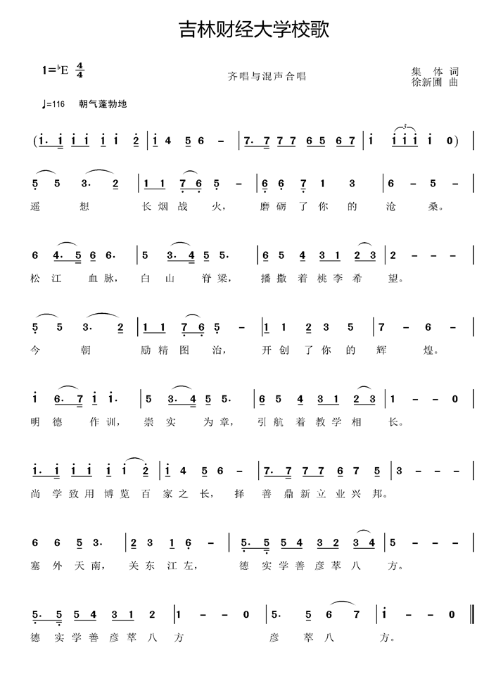 原《长春税务学院院歌》曲谱。