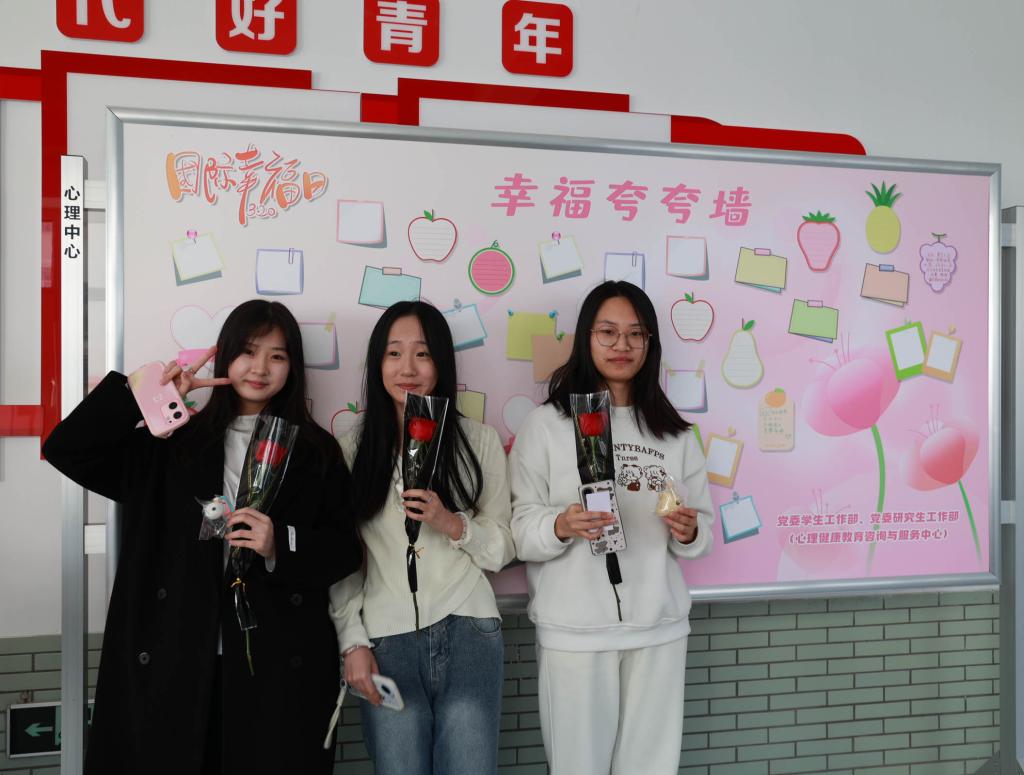 本网讯(党委学生工作部 供稿)3月19日,党委学生工作部开展了“幸福如花 芬芳满园”3·20国际幸福日活动,学校党委副书记刘鹤参加了此次活动。本次活动设置在德真社区、实忠社区和实恭社区3个主会场与其他13个社区分会场,实现了16个学生社区的全覆盖,规模盛大,吸引力十足,累计有7000余名学生踊跃参与。活动现场设置了“幸福盲盒”和“幸福夸夸墙”两大互动环节,在“幸福盲盒”环节,同学们抽取“幸福任务卡”,完成简单而...