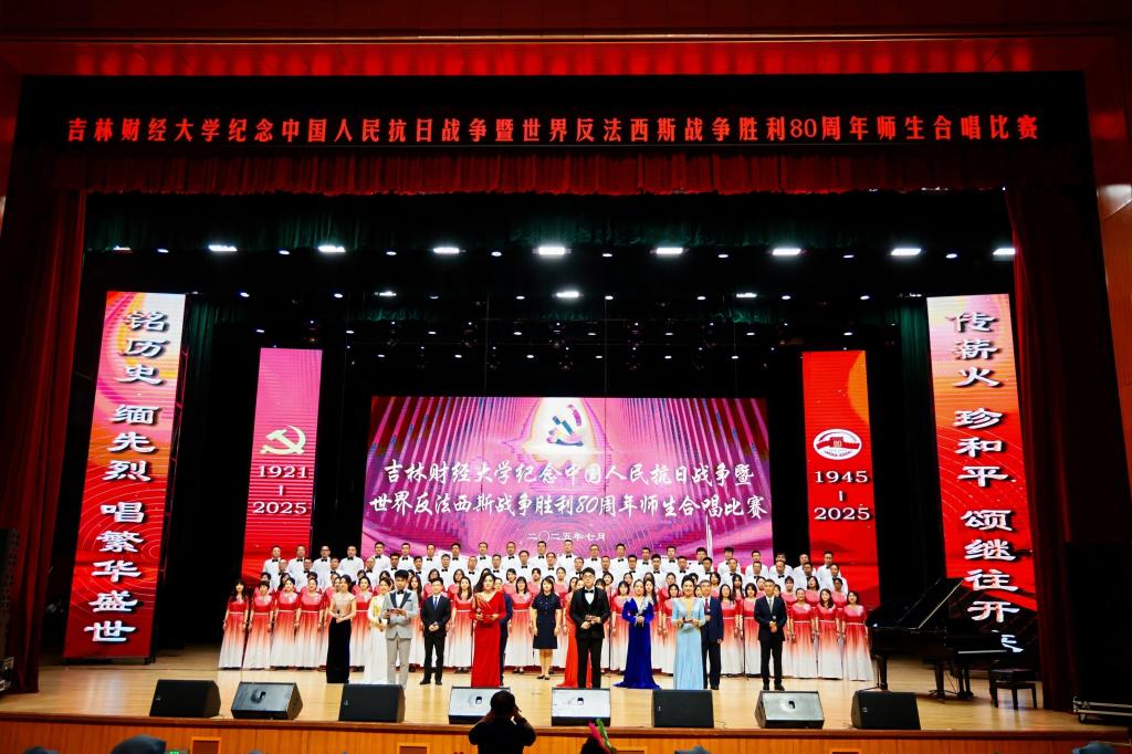 本网讯(校工会 供稿)为纪念中国人民抗日战争暨世界反法西斯战争胜利80周年,热烈庆祝中国共产党成立104周年,7月1日下午,学校在多功能学术中心举行师生合唱比赛,以歌声弘扬抗战精神与中国共产党人精神谱系,引领师生坚定理想信念、凝聚奋进力量,以昂扬姿态展现新时代吉财人的精神风貌,为学校高质量发展注入澎湃动能。比赛现场气氛热烈而庄重。学校领导张炳辉、马秀颖、岳宏、刘鹤、丁庆东、王菁华、庞长亮、杨楠及广大师...