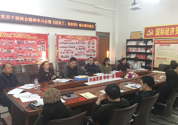 本网讯(国际经济贸易学院 供稿)3月21日下午,国际经济贸易学院全体教职员工一起观看了大型纪录片《厉害了,我的国》,并在观影之后党员干部回到学院会议室,学习了“两会”精神,畅谈了影片观后感。 国经学...