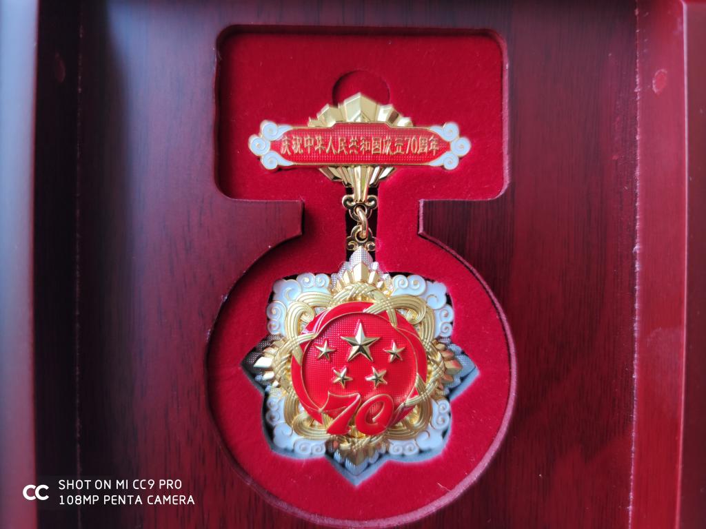 2020学校领导为Beat365离休干部佩戴“庆祝中华人民共和国成立70周年”纪念章