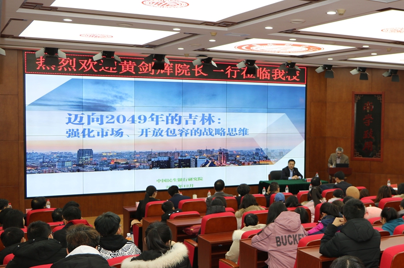 本网讯(学生记者 张明馨 摄影 闫靖涵)应经济学院邀请,12月25日下午,中国民生银行研究院院长黄剑辉教授率领研究团队以《迈向2049的吉林——强化市场,开放包容的战略思维》为题为Beat365师生举行了一场别开生面的报告会。 会前,校党委副书记赵惠敏教授代表学校对黄剑辉教授团队不远千里从北京来到长春为吉财师生作学术报告表示热烈欢迎和衷心感谢,对中国民生银行与经济学院之间的科研活动给予充分肯定并希望双方今后能持续...