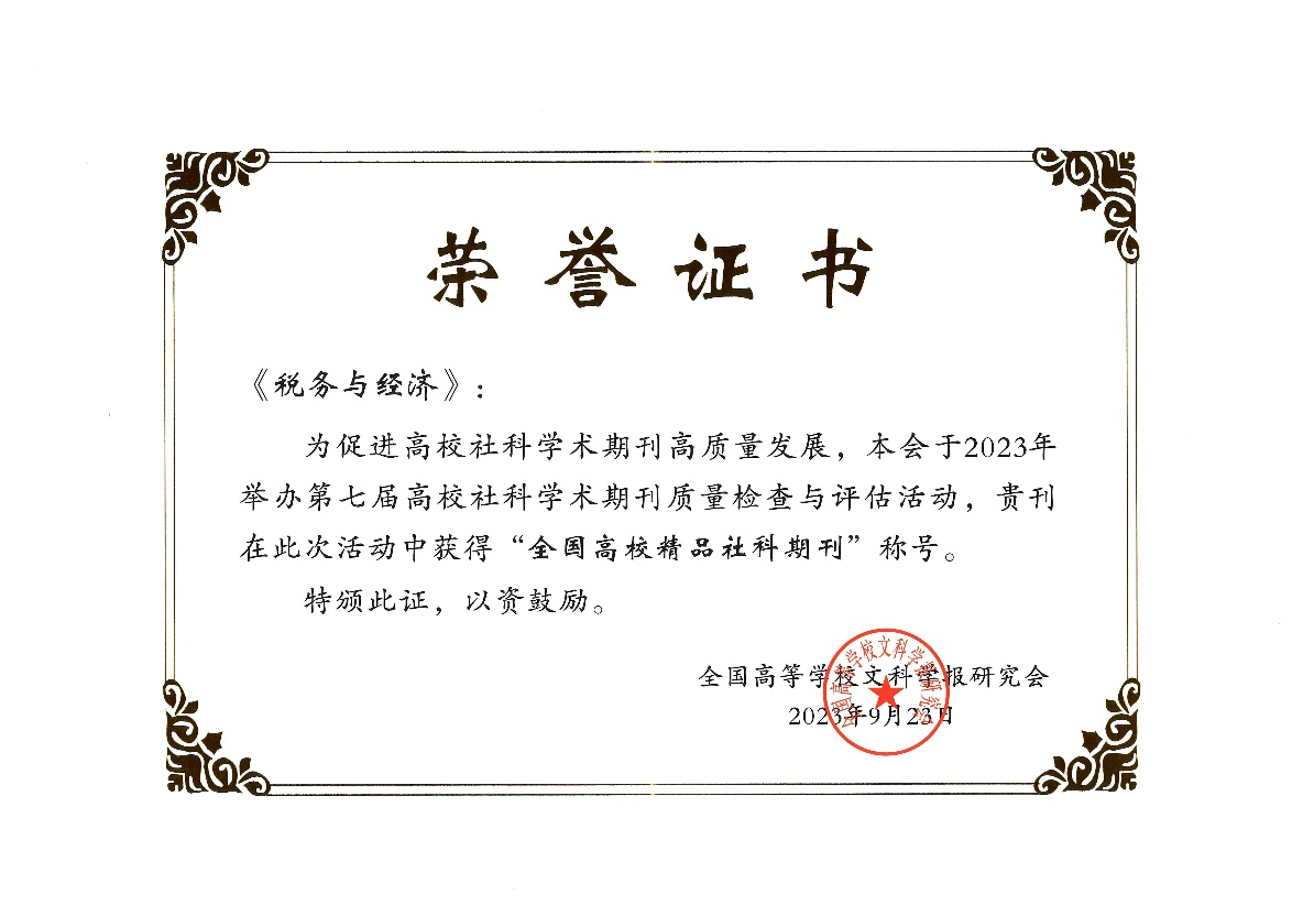 2023《税务与经济》继续入选CSSCI扩展版来源期刊并荣获“全国高校精品社科期刊”称号