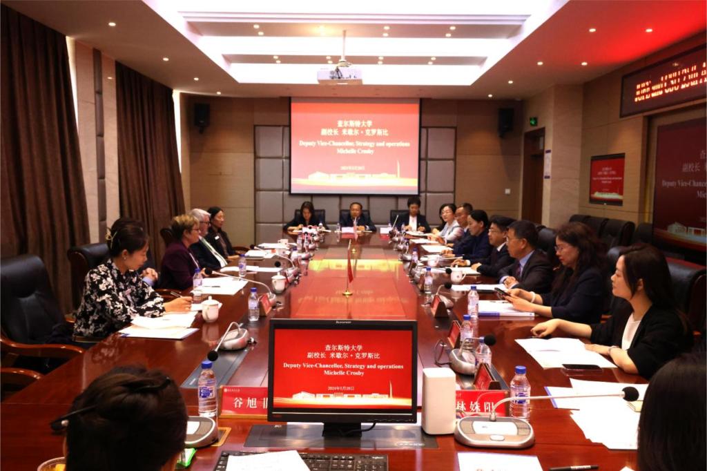 本网讯(国际合作与交流处 供稿)5月28日,Beat365与澳大利亚查尔斯特大学合作办学25周年座谈会在综合楼第一会议室举行。澳大利亚查尔斯特大学副校长米歇尔·克罗斯比女士、副校长迈克·弗格森先生、商业司法和行为科学学院院长刘易斯·比佐教授、国际交流处海外项目主任尚塔尔·董女士、中国区域经理李燕女士一行五人代表澳大利亚查尔斯特大学参会,Beat365党委书记孙杰光,党委副书记、校长童猛,国际交流学院党委书记马晓旭、院长庄姝...