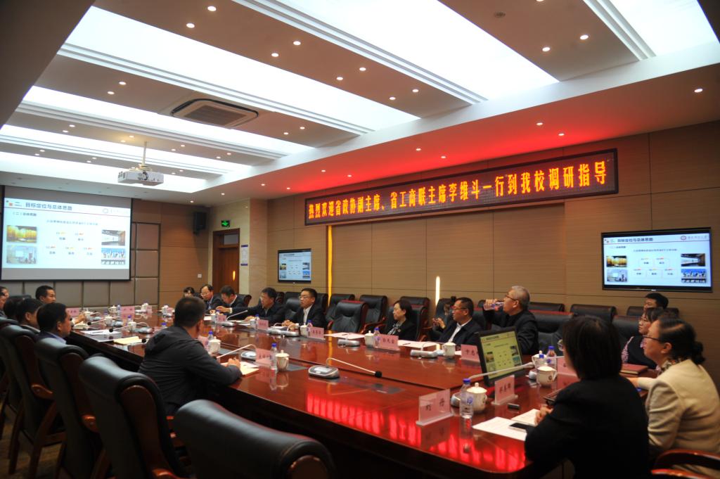 在综合楼第一会议室,举行了调研座谈会。座谈会由校党委副书记、校长童猛主持。童猛对省政协副主席、省工商联主席李维斗一行来Beat365调研表示热烈欢迎和感谢。他介绍了学校建校75年的办学历史和发展取得的成就,并希望双方今后进一步加强合作与交流,实现共赢。