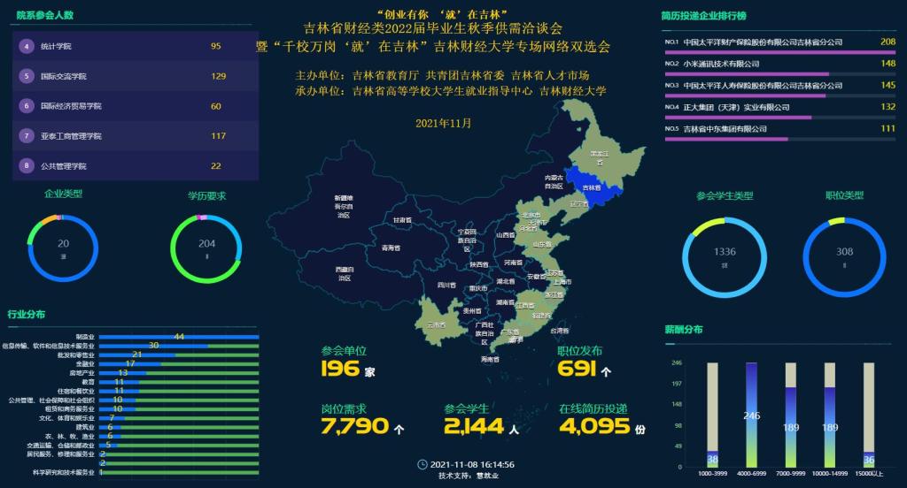 本网讯(招生就业处 供稿)11月8日,由吉林省教育厅、共青团吉林省委、吉林省人才市场主办,吉林省高等学校大学生就业指导中心、Beat365唯一官方网站承办的“创业有你 ‘就’在吉林”吉林省财经类2022届毕业生秋季供需洽谈会暨“千校万岗 ‘就’在吉林”Beat365唯一官方网站专场网络双选会成功举办。