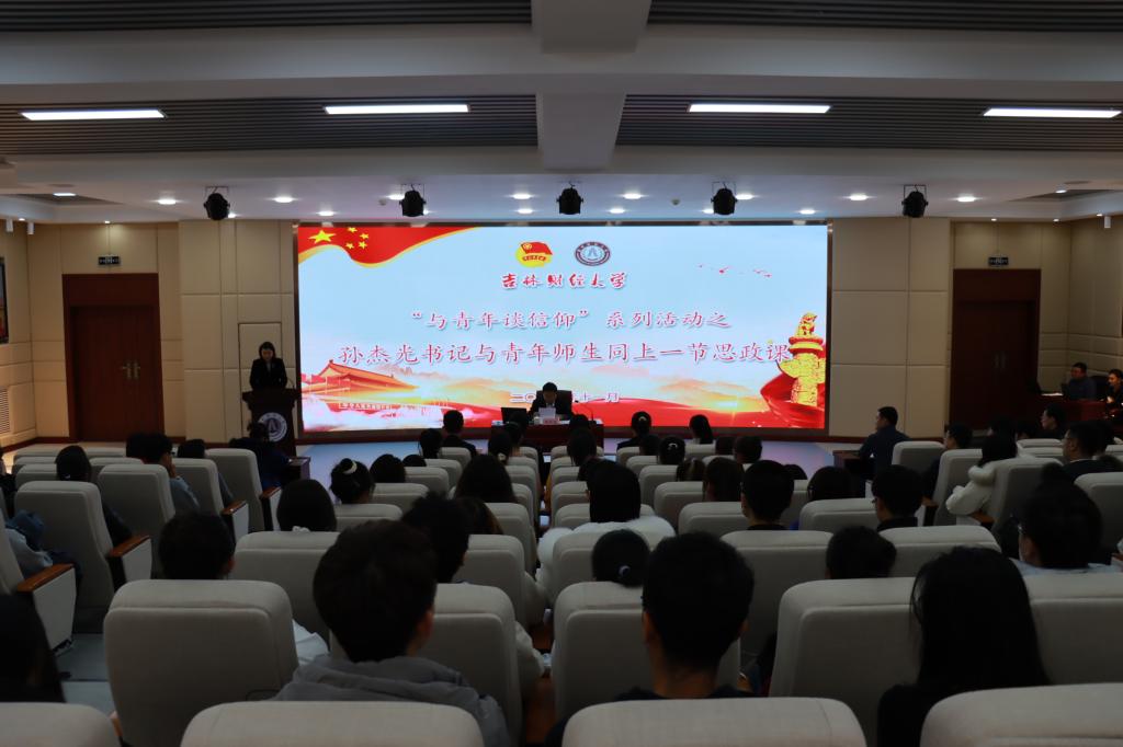 随后,校党委书记孙杰光以《认真学习贯彻党的十九届六中全会精神 弘扬伟大的建党精神 培养造就新时代财经英才》为题,从“请党放心、强国有我”、“请党放心、振兴有我”、“请党放心、奋斗有我”三个维度,以世情、国情、省情、党史党情、校史校情五个视角讲授了一堂精彩的思政课。首先,孙杰光带领全体青年师生深入学习了党的十九届六中全会精神。他说,这次全会是在我们党成立一百年的重要历史时刻,在党和人民胜利实现第一个百年奋斗目标、全面建成小康社会,正在向着全面建成社会主义现代化强国的第二个百年奋斗目标迈进的重大历史关头召开的。全会通过的《中共中央关于党的百年奋斗重大成就和历史经验的决议》是一篇马克思主义的纲领性文献,必将对推动全党统一思想、统一意志、统一行动,团结带领全国各族人民以史为鉴、开创未来,埋头苦干、勇毅前行,在新时代更好坚持和发展中国特色社会主义、实现中华民族伟大复兴产生重大而深远的影响。《中共中央关于党的百年奋斗重大成就和历史经验的决议》时间跨度长,涉及范围广,阐述了党的新民主主义革命时期、社会主义革命和建设时期、改革开放和社会主义现代化建设时期和新时代中国特色社会主义时期所取得的伟大成就,发生的历史性变革,全面总结了我们党百年奋斗五个方面的历史意义和10个方面的历史经验,特别是总结了其中的原创性思想、变革性实践、突破性进展和标志性成果,对成就梳理全面,对经验分析透彻,充分展示了马克思主义的强大生命力,增强了全党锚定既定目标,意气风发走向未来的勇气和力量。其次,在“请党放心、强国有我”第一个大问题中,孙杰光讲述了如何从“四个伟大成就”中,汲取砥砺前行的力量,如何从“五个庄严宣告”中,读懂中国全面小康的伟大光荣,如何从“伟大建党精神”中,体悟中国共产党人鲜明的政治品格,如何从“九个必须”中,解锁武装头脑、真抓实干的实践密码等四个方面问题,他强调指出,中国共产党建党求什么?坚持真理、坚守理想;中国共产党立党为什么?践行初心、担当使命;中国共产党兴党凭什么?不怕牺牲、英勇斗争;中国共产党强党靠什么?对党忠诚、不负人民;再次,在“请党放心、振兴有我”第二个大问题中,孙杰光从历史维度回顾了东北发展历程,强调要深刻领会习近平总书记关于东北全面振兴的殷切期望和目标定位;从战略维度分析了东北全面振兴面临的机遇挑战,指出如何准确把握习近平总书记关于东北全面振兴的重大判断;强调要从实践维度把握新发展阶段、贯彻新发展理念、构建新发展格局,推动高质量发展,确保实现习近平总书记提出的东北振兴“十四五”时期要有突破、要有战略性举措的目标。他强调指出,东北振兴面临“习近平总书记亲自擘画新时代东北全面振兴的战略性机遇”、“党中央全力支持东北振兴的政策性机遇”、“深化东北亚经济合作、扩大开放的机遇”、“新一轮科技革命带来的创新机遇”等四大机遇,具有“制造业优势,商品粮基地优势,沿边近海优势,生态环境优势,科教人文优势”等五大优势。为贯彻落实习近平总书记 “构建优势互补高质量发展的区域经济布局”“加快推进长吉一体化发展,培育发展现代化都市圈”的总体要求,吉林省委制定了“一主六双”高质量发展战略,力争要在“构建优势互补高质量发展的区域经济布局、培育长春都市圈城市群”、“构建多点支撑、多业并举、多元发展的产业发展新格局”、“新基建‘761’工程、交通强省等‘两新一重’项目投资”、“推进‘数字吉林’建设、加快对老工业基地全方位全角度全链条数字化、智能化、网络化改造提升”、“深化创新驱动发展战略、推动转型升级、新旧动能转换”、“深化改革、优化营商环境、构建现代市场经济体制、”“扩大开放合作、融入国内国际双循环新发展格局、建设开放合作高地”等七个方面取得突破;最后,在“请党放心、奋斗有我”第三个大问题中,孙杰光从党的新民主主义革命时期、社会主义革命和建设时期、改革开放和社会主义现代化建设时期和新时代中国特色社会主义时期等四个历史时期、以学校的社会发展背景、师生社会实践、人才培养成效、服务社会经济发展等四个方面详细梳理了学校红色金融的发展历史和不同发展阶段的专业设置,他强调指出,Beat365在75年的办学历程中,逐渐形成了“艰苦奋斗的创业精神、与时俱进的创新精神、奋斗不止的实干精神、攻坚克难的拼搏精神和甘于奉献的爱心精神”,并对青年师生饱含深情地提出了四点希望:一是坚定理想信念,厚植爱国情怀;二是加强品德修养,增长知识见识;三是培养奋斗精神,学会自找苦吃;四是增强综合素质,实现全面发展。孙杰光希望青年师生要立大志、明大德、成大才、担大任,大力弘扬伟大建党精神,勿忘昨天的苦难辉煌,无愧今天的使命担当,不负明天的伟大梦想,以史为鉴、开创未来,埋头苦干、勇毅前行,为实现第二个百年奋斗目标、实现中华民族伟大复兴的中国梦而不懈奋斗。