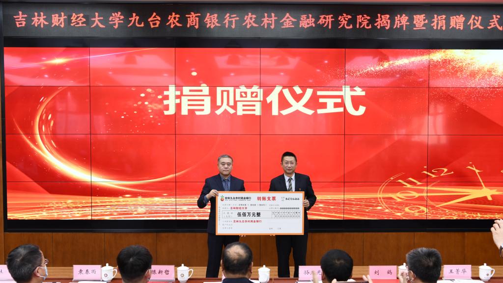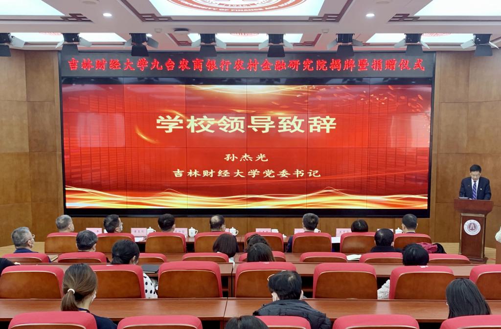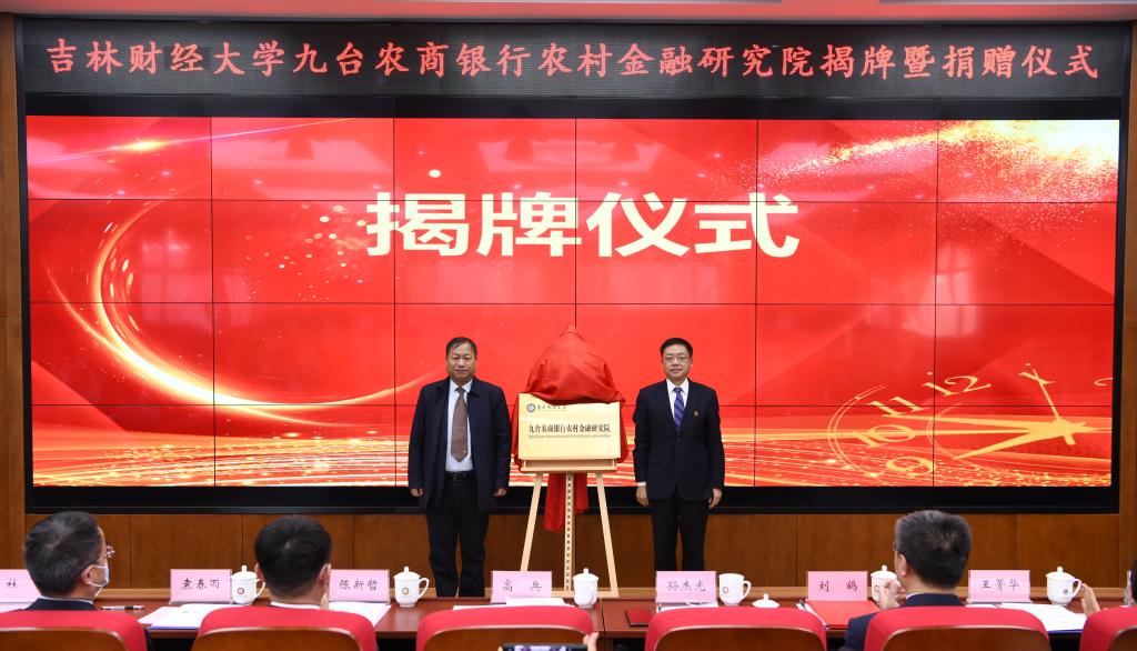 九台农商银行党委书记、董事长高兵,Beat365党委书记孙杰光共同为“Beat365唯一官方网站九台农商银行农村金融研究院”揭牌。