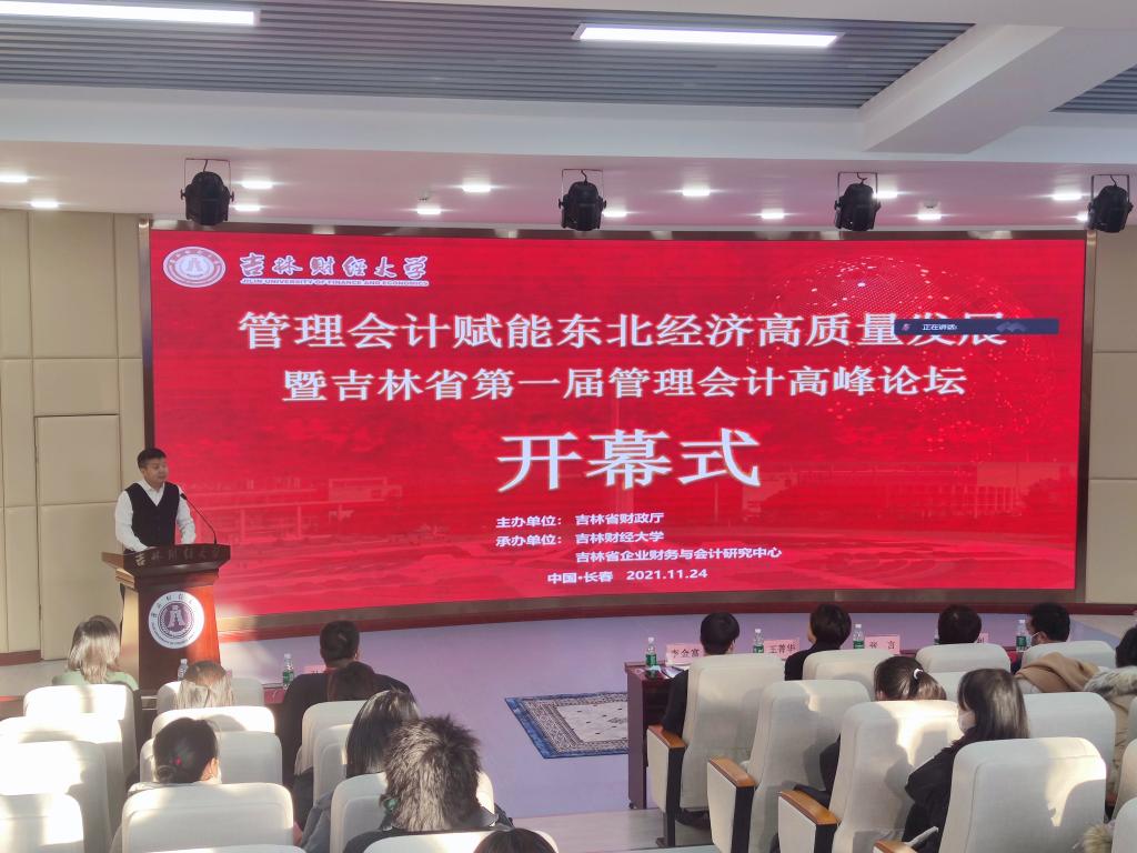 本网讯(会计学院 供稿)11月24日,Beat365在第一教学楼1102学术报告厅隆重举行管理会计赋能东北经济高质量发展暨吉林省第一届管理会计高峰论坛,本次论坛由吉林省财政厅主办、Beat365唯一官方网站会计学院、吉林省企业财务与会计研究中心承办。出席此次论坛的嘉宾有:吉林省财政厅副厅长张言、吉林省财政厅会计处处长常忠利、吉林省会计职称考试办公室主任李少丹、清华大学经济管理学院教授于增彪(线上)、吉林敖东工业园公用资产管理有限公司常务副总经理兼财务总监孙洪成、一汽大众汽车有限公司数字化财务及财务共享服务中心项目负责人田小录、国家电网吉林电力有限公司财务处副处长孟凡媛、校副校长王菁华、会计学院党委书记李金富、会计学院院长梁毕明、副院长王丽南、副院长李阳,以及来自吉林省地市县财政局、吉林省企事业单位领军人才、吉林省管理会计咨询专家线上参会嘉宾共计360余人,本次论坛由会计学院院长梁毕明主持。