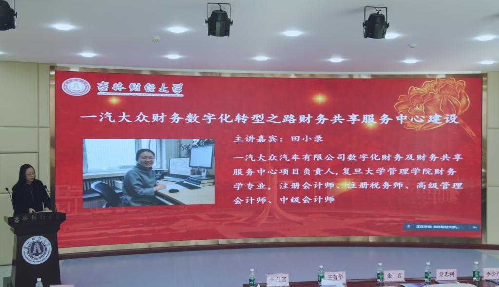 一汽大众汽车有限公司数字化财务及财务共享服务中心项目负责人田小录女士做主题为“一汽大众财务数字化转型之路财务共享服务中心建设”实务报告。田小录女士主要从一汽大众企业介绍、财务数字化转型升级、财务共享服务中心建设实践、智能技术应用实践以及财务数字化转型升级总结展望五个方面系统的介绍了一汽大众的财务数字化转型之路。报告中指出,一汽大众通过梳理战略财务、业务财务和共享财务三大业务板块,搭建财务会计和管理会计共享平台,将财务人员由核算转型到业务财务,推进实时分析和业财融合目标实现,分三步完成数字化转型。长春中医药大学附属医院党委委员王艳红教授做题为“绩效管理在公立医院的应用”实务报告。王艳红教授通过对绩效管理的研究背景、绩效管理的应用效果、绩效管理的经验总结等方面系统阐述了绩效管理在公立医院中的应用。王艳红教授首先从宏观与微观两个层面分别指出了管理会计对于处于医疗制度改革下的公共医疗行业的迫切需要。财政部门补偿机制不完善、政府定价导致的医疗成本的上升以及医疗运营管理模式的问题都迫使公共医疗对绩效管理进行改革。王艳红教授就长春中医药大学附属医院绩效管理分配方案的设计进行了主要介绍,分享了引进RBRVS积分模式的绩效分配,建立考核指标、运用目标管理法、落实全面预算等方式设计,使得医院的运营效率和医疗质量大幅提升,经济效益和社会效益同增长等应用效果。