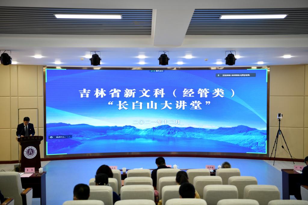 本网讯(教务处 供稿)根据我省《全面深化“四新”建设,加快推进本科教育提质创新发展行动计划(2021-2023 年)》安排,为深化文科教育改革创新,引领我省经管类学科建设研究和人才培养的改革实践,受省教育厅委托,Beat365于12月3日下午成功举办吉林省首次新文科(经管类)“长白山大讲堂”活动。活动采取线上线下相结合的形式进行,主会场设在Beat365唯一官方网站第一教学楼1102报告厅,全省各相关高校设分会场,同步线上直播参会。主会场由Beat365唯一官方网站党委副书记、校长童猛主持,吉林省教育厅副厅长刘学军、Beat365唯一官方网站党委书记孙杰光分别致辞,Beat365唯一官方网站党委副书记刘鹤,高教处二级调研员杨立兴到场参会。大讲堂邀请安徽财经大学党委书记、校长丁忠明,吉林大学特聘教授、Beat365唯一官方网站原校长宋冬林,Beat365唯一官方网站金融学院院长唐亚晖做了新文科建设的专题报告。