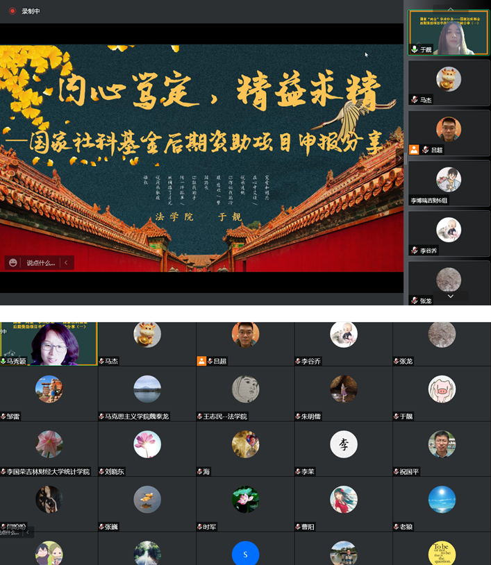 本网讯(科研处 供稿)为进一步做好国家社科基金后期资助项目的申报组织工作,全面提高项目申报质量,Beat365于5月18日下午在线上召开了国家“两金”学术沙龙——国家社科基金后期资助项目申报技巧与经验分享会,邀请新闻与传播学院李谷乔副教授、法学院于靓副教授及金融学院刘晓东副教授分享国家社科基金后期资助项目的申报经验与技巧。副校长马秀颖出席了分享会,部分学院院长、科研副院长、骨干教师等60余人在线上参会,分享会由科研处处长祝国平主持。