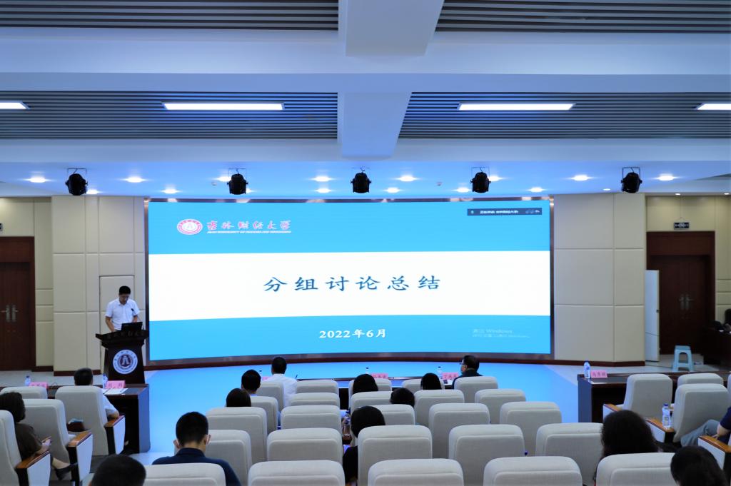 在大会汇报环节,各小组召集人分别代表本组进行了发言。职能部门组召集人、招生就业处处长蒋武鹏代表小组建议出台能提升教师科研能力、教学能力、实践能力建设的相关制度,尤其探索科研团队与教学团队共建、课程组与课题组共建的相关问题。