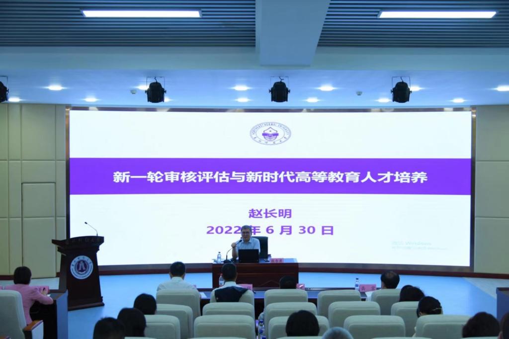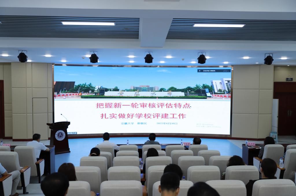 在培训辅导阶段,东北师范大学教务处副处长赵长明做题为《新一轮审核评估与新时代高等教育人才培养》,安徽大学党委书记蔡敬民做了关于《把握新一轮审核评估特点,扎实做好学校评建工作》的报告,同济大学特聘研究员李亚东做了关于《新一轮审核评估准备工作与质量保障及质量文化建设》的报告。三位专家分别从教育部新一轮审核评估的精神内涵、学校评建的关键节点,新一轮审核评估的6个突出特点、试点工作情况以及高校内部质量保障体系构建的基本问题进行了高屋建瓴、深入浅出的报告。