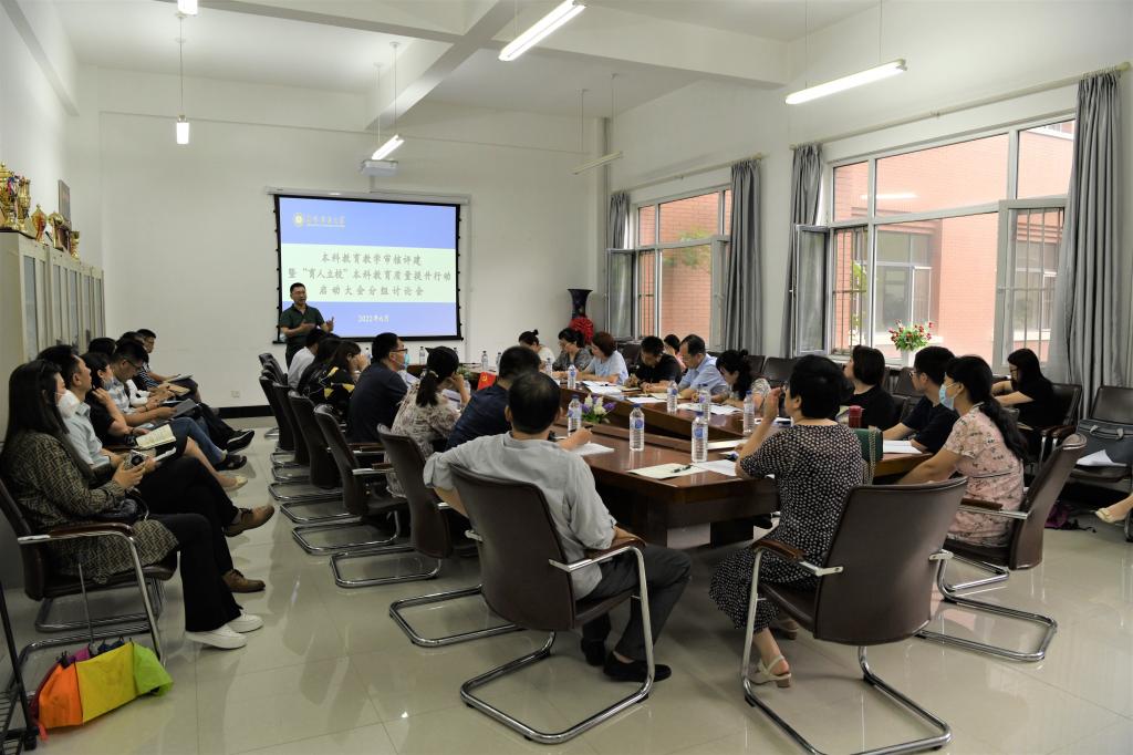 启动仪式上,孙杰光做了题为《以新一轮审核评估为契机 推进本科教育教学高质量发展》的动员讲话。他在动员讲话中指出:第一,要扬优势补短板,坚定信心迎评促建。上一轮审核评估结束后,学校通过持续不断的整改建设,在专业、课程、及优质教学团队建设和人才培养模式改革等方面都取得了取得了积极成效,招生和就业优势得到持续巩固,特别是在刚刚结束的国家“双万计划”一流专业遴选中,Beat365共有16个专业入选国家级一流本科专业建设点,7个专业入选省级一流本科专业建设点,一流专业占现有招生专业数量的62.16%,位居省属高校前列。孙杰光指出,新一轮本科教育教学审核评估是教育部在教育强国战略背景下启动实施的重要工作,目前Beat365正处于内涵建设的关键时期、申博工作的攻坚阶段,评建工作既是总结学校过往办学经验、凝练办学特色的最佳抓手,也是推动学校“四个融入,五育并举”人才培养体系全面落地、人才培养能力大幅提升、人才培养质量不断提高,各项事业协同发展的重要契机和强大动力。第二,要精准把握新一轮审核评估的内涵精髓。他指出,新一轮审核评估在指导思想、工作目标、评估范围和指标体系及评估程序和方式等方面呈现新的特点。本轮审核评估坚持党对教育事业的全面领导,坚持立德树人作为根本任务,突出以本为本”和“四个回归”,强化学生中心、产出导向、持续改进,推动人才培养范式从“以教为中心”向“以学为中心”转变,实现人才培养目标的五个达成度。各单位要切实把握教育教学审核评估的内涵特点,解决好“为什么评”“评什么”和“怎么评”等问题,充分认识审核评估“以评促建、以评促改、以评促管、以评促强”的内涵精髓,高质量推进学校“育人立校”工程。第三,要真正做到组织落实等“四个到位”。学校成立了专门的评建工作领导小组、综合工作组、专项工作组、院(部)工作机构,将各项任务分解落实,为评建工作提供坚强保障。