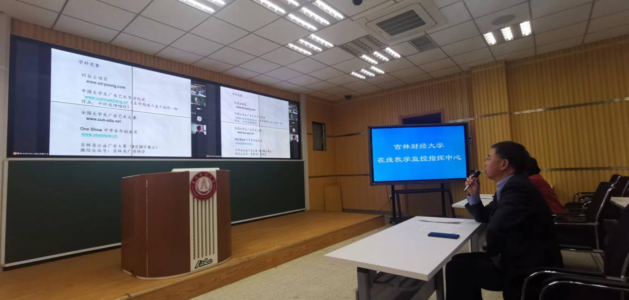 在教学监控指挥中心,童猛随机听看了亚泰工商管理学院崔宏桥讲授的《管理学》、王竑讲授的《旅游消费者行为》、应用数学学院赵启明讲授的《考研数学1》、国际经济贸易学院张智远讲授的《商务英语1》、金融学院徐扬讲授的《货币银行学》和新闻与传播学院冷艳讲授的《广告学概论》等课程。巡课过程中,童猛从课程设置、线上教学质量、实践教学、学生在线学习状态及日常生活等方面与冷艳老师和李博同学进行了互动交流。同时,童猛也代表学校表达了对线上师生的关心和问候,对全体教师一丝不苟、细致周到的课前准备以及开学第一天有条不紊的在线教学秩序给予了充分肯定。