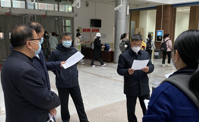 一大早,校党委书记孙杰光,校党委副书记、校长童猛,校党委副书记岳宏,校纪委书记、监察专员丁庆东,副校长王菁华,副校长李宝永和副校长马秀颖带队来到了线下教学现场,就教室的使用情况、师生到课率情况、课堂学风教风情况以及教学保障、疫情防控等情况,进行了全面细致的了解与检查,与全校师生共赴线下课堂之约。