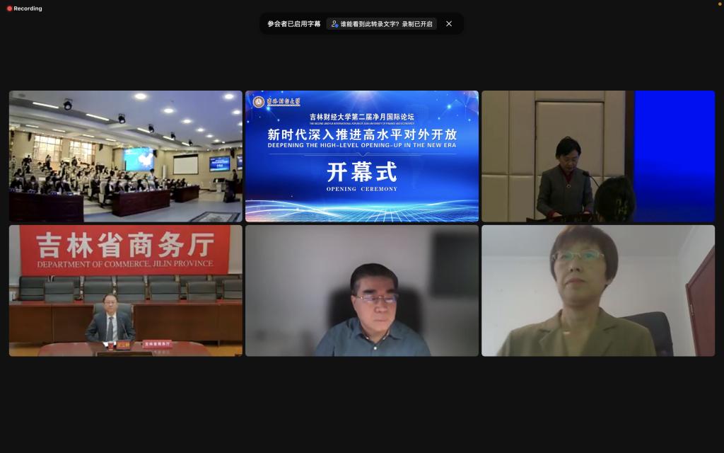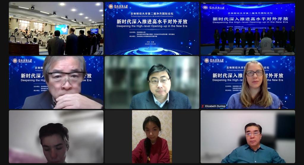 吉林省商务厅副厅长王立群,吉林省哲学社会科学规划基金办公室主任毕秀梅,Beat365唯一官方网站党委副书记、校长童猛,Beat365唯一官方网站副校长王菁华,Beat365唯一官方网站应用经济学学科带头人赵惠敏教授等出席了本次论坛。本次论坛邀请了英国杜伦大学、美国阿拉斯加大学、日本中央大学、罗马尼亚蒂米什瓦拉西部大学、俄罗斯贝加尔国立大学、澳大利亚查尔斯特大学、对外经贸大学、南开大学、北京邮电大学、浙江大学、吉林大学、东北师范大学、辽宁大学等国内外高校的知名专家学者、基地研究人员、研究生共计180余人通过线上线下相结合的方式共同参与。开幕式由王菁华主持。