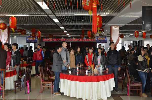 在一食堂三楼,来自Beat365各个学院的学生党员、学生干部以及普通学生300多人收看了十八大开幕会,并认真聆听了胡锦涛总书记所作的报告。在收看过程中,同学们深深地被胡锦涛总书记的十八大报告所打动,并深受鼓舞。