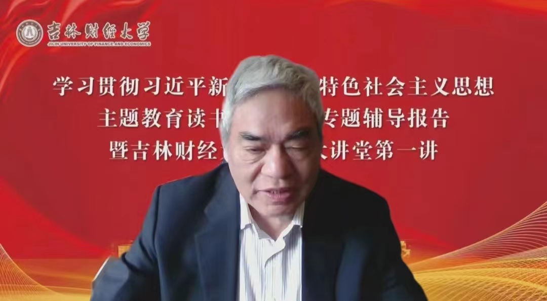 报告会开始前,学校党委书记、全国中国特色社会主义政治经济学研究中心主任孙杰光致辞。他指出,学校党委举办学习贯彻习近平新时代中国特色社会主义思想主题教育读书班专题辅导报告,是在开展个人自学和集中学习基础上的有效补充,是丰富全校各级党员领导干部对习近平新时代中国特色社会主义思想的学习和掌握的有效方式。同时,为深入学习习近平经济思想和习近平总书记关于东北振兴的重要论述和视察吉林重要讲话重要指示精神,进一步推动马克思主义政治经济学和新时代中国特色社会主义政治经济学的学习、研究、运用,Beat365全国中国特色社会主义政治经济学研究中心决定创办“Beat365唯一官方网站政经大讲堂”,并将举办系列讲座,为构建中国特色哲学社会科学自主知识体系和学术体系、学科体系、话语体系贡献吉财力量。最后,孙杰光对各级主题教育读书班提出六点新要求:一是必须抓住重点全面开展集中学习和个人自学;二是要严格落实“第一议题”制度,把学习贯彻习近平新时代中国特色社会主义思想和习近平总书记重要讲话精神作为一项重大政治任务,作为校院两级理论学习组和各级读书班的必修课;三是要结合思想及工作实际,互相交流运用党的创新理论解决实际问题的具体案例和心得体会;四是要充分利用红色资源和文化教育基地开展实践教学;五是要推出一批高质量研究成果,加速推进学习成果转化;六是要加强对二级党组织读书学习的指导和检查。