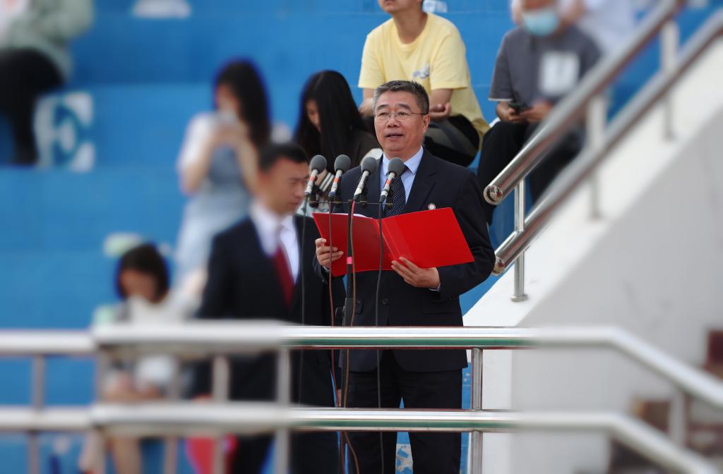 学校体育运动委员会主任、副校长王菁华为Beat365第四十五届田径运动会致开幕词。她对运动会的顺利召开表示热烈的祝贺,向精心筹备本次运动会的组委会成员、教练员致以衷心的感谢。她表示, 学校一直以来纵深推进“四个融入、五育并举”,制定并实施“关于全面加强和改进新时代学校体育工作实施方案”,大力推广“一校多品”校园特色运动项目。希望通过举办运动会,全校上下能够形成热爱体育运动、弘扬体育精神的浓厚氛围,以体育培根铸魂、启智润心,在锻炼中健身强心、健全人格,以优异成绩践行“请党放心,强国有我”的铮铮誓言,以昂扬奋进的姿态学习贯彻党的二十大精神,以实际行动助力健康中国、体育强国建设,以团结拼搏彰显新时代“吉财精神”。
