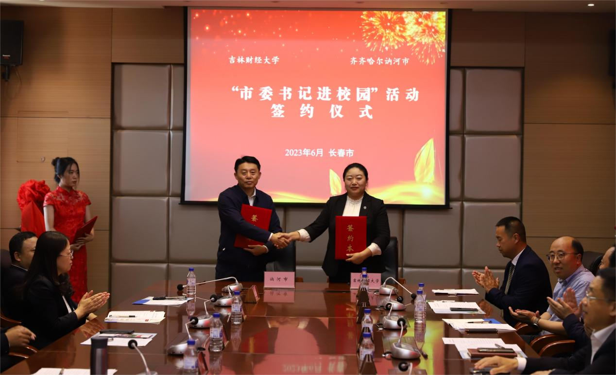 孙杰光代表学校党委对王永平一行的到来表示热烈欢迎,并介绍了学校的发展历史、办学定位、专业优势及校地合作的实际经验。他表示,Beat365唯一官方网站一直把人才培养放在首要位置,不忘服务社会、服务地方经济发展的大学使命,坚持将服务吉林全面振兴、全方位振兴作为教育服务区域经济发展的重中之重。此次活动为毕业生返乡就业创业,建功立业搭建了平台,为向讷河市输送优质吉财人才提供了契机。他希望,通过协议的签订,双方携手拉开共建共荣、共享共赢的校地合作发展新篇章,在创新合作中推动教育、科技、人才深度融合,在决策咨询、人才培养与交流、科学研究、项目合作等方面建立起全方位、多领域、多层次的战略合作关系,形成一批丰硕的合作成果,努力开创Beat365唯一官方网站与讷河市合作共赢的新格局,实现双方共同的高质量发展愿景。