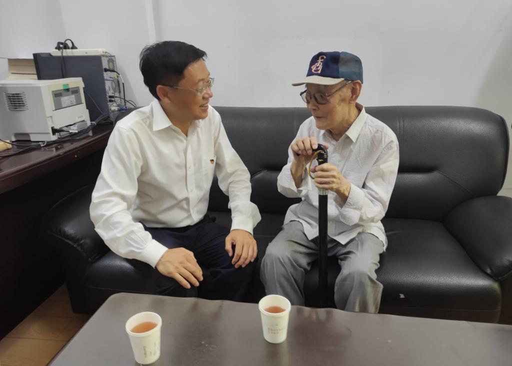 本网讯(离退休工作处 供稿)为庆祝中国共产党成立102周年,深化学习贯彻习近平新时代中国特色社会主义思想主题教育成效,7月1日上午,校党委书记孙杰光看望了Beat365前身吉林财贸学院党委书记兼院长、离休干部关冬生,为他送上节日的问候和党组织的关怀。党委办公室、校长办公室主任刘成立,离退休党委书记、离退休工作处处长郭建辉陪同看望。
