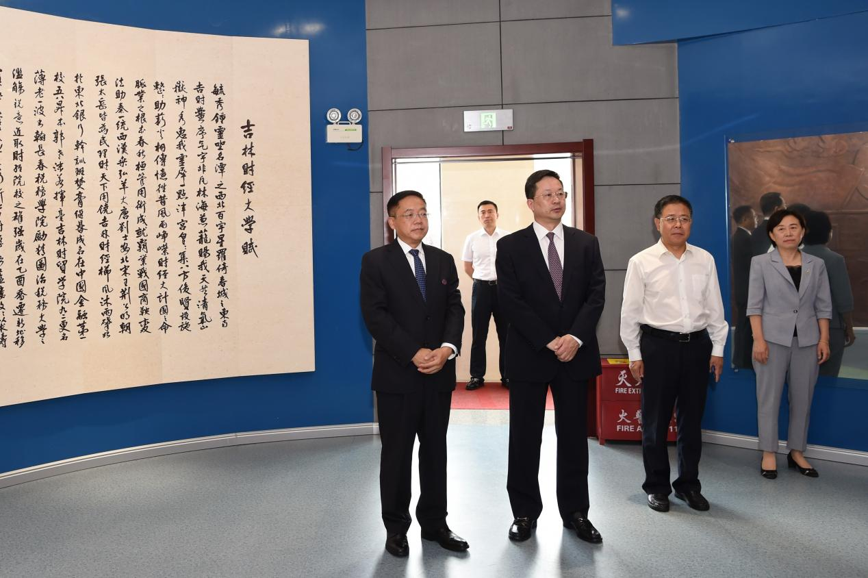 仪式开始前,学校领导陪同周立群参观了校史馆、吉商博物馆、财税思想史(数字)博物馆,并就学校的历史沿革、办学特色、专业建设、人才培养等方面进行了深入探讨与交流。