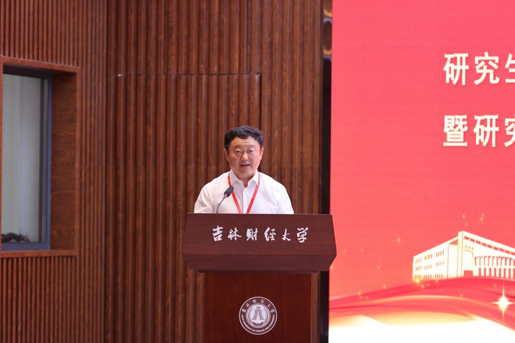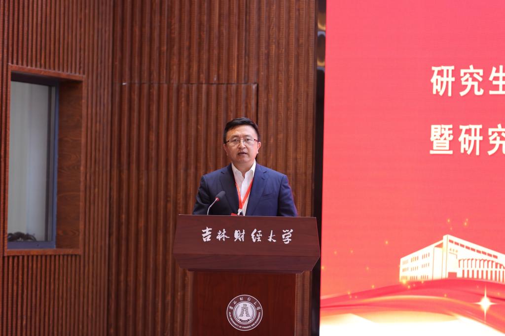 开幕式在庄严肃穆的国歌声中拉开帷幕,孙杰光代表学校致欢迎辞,他向长期以来给予学校关心、支持和帮助的各级领导、兄弟高校、科研院所、海内外校友以及社会各界友人表示感谢和敬意,介绍了学校77年波澜壮阔的办学历史,他指出,77年来,学校坚守 “为党、为国,为区域经济发展培育财经英才”的初心使命,为服务国家战略需求和吉林振兴发展需要,作出了积极贡献,在科学研究、人才培养、文化传承创新、服务社会和国际交流合作等方面都取得了长足的发展与进步。他指出,研究生教育事业40年来蓬勃发展,得益于党对高等教育的领导,得益于上级组织和领导的亲切关怀,得益于兄弟高校的真诚合作,得益于所有老领导、老同志的辛勤耕耘,得益于各位校友的深情厚爱和社会各界的鼎力支持,得益于每一位吉财人的艰苦奋斗。围绕全面提高人才自主培养质量,着力造就拔尖创新人才,他强调,一要立足教育强国使命,深入落实立德树人根本任务。二要建设高素质专业化创新型导师队伍,打造高水平人才培养体系。三要遵循研究生教育规律,着力培养研究生创新能力和实践能力。四要坚持“四个面向”,紧紧围绕国家重大战略需求和吉林振兴发展需要优化学科专业布局。