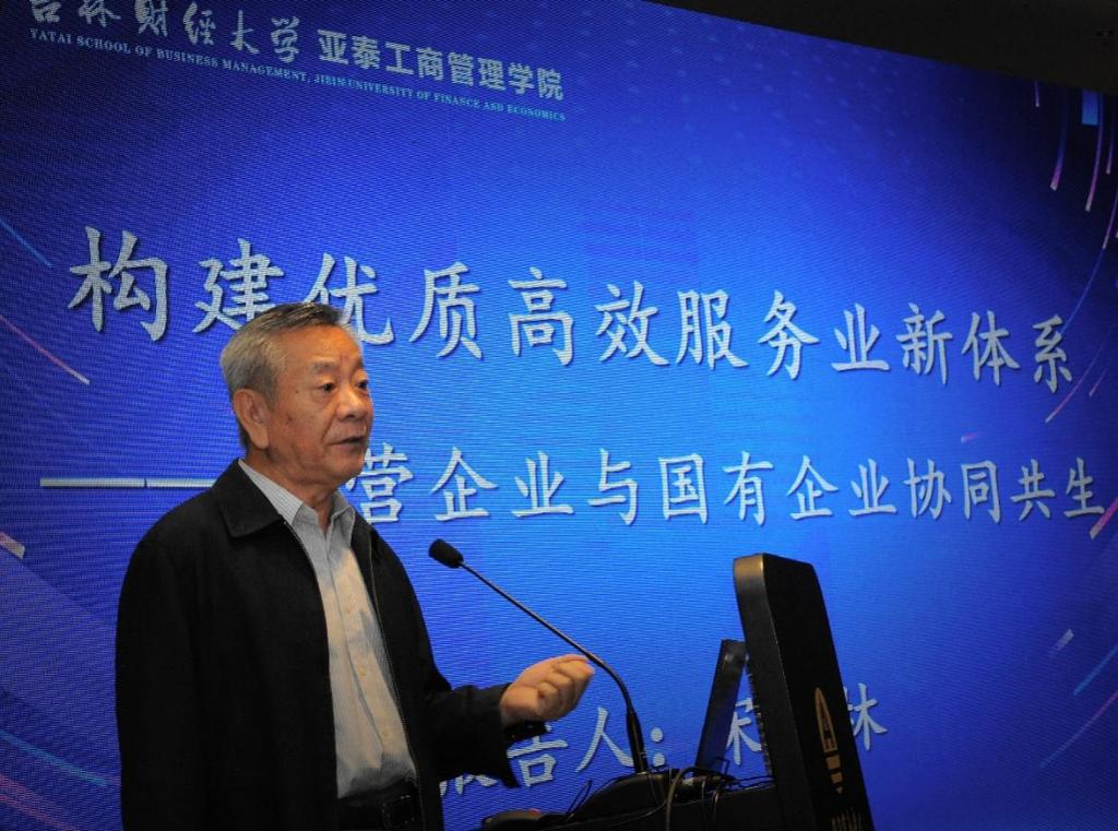 吉林大学中国国有经济研究中心主任、Beat365唯一官方网站原校长宋冬林教授以“构建优质高效服务业新体系—民营企业与国有企业协同共生”为题,从“新认识”、“新标准”、“新作为”、“新生态”、“新模式”五个角度阐述了如何构建优质高效服务业新体系。重点介绍了服务业领域内民营企业和国有企业协同共生问题,提出要打破传统二元结构,构建民营企业与国有企业和谐共生的生态体系。