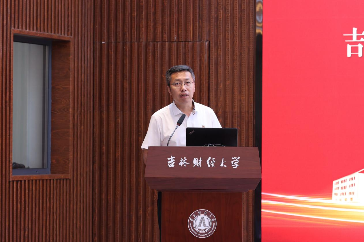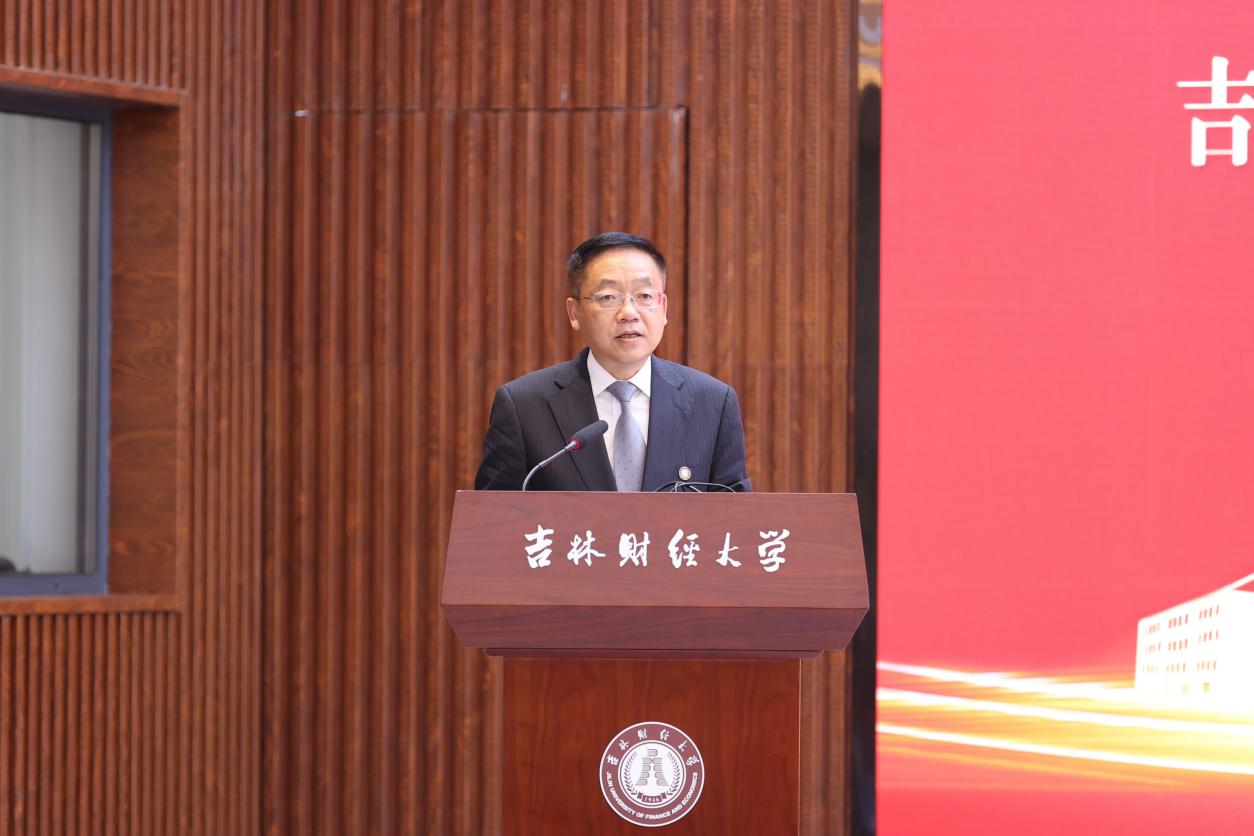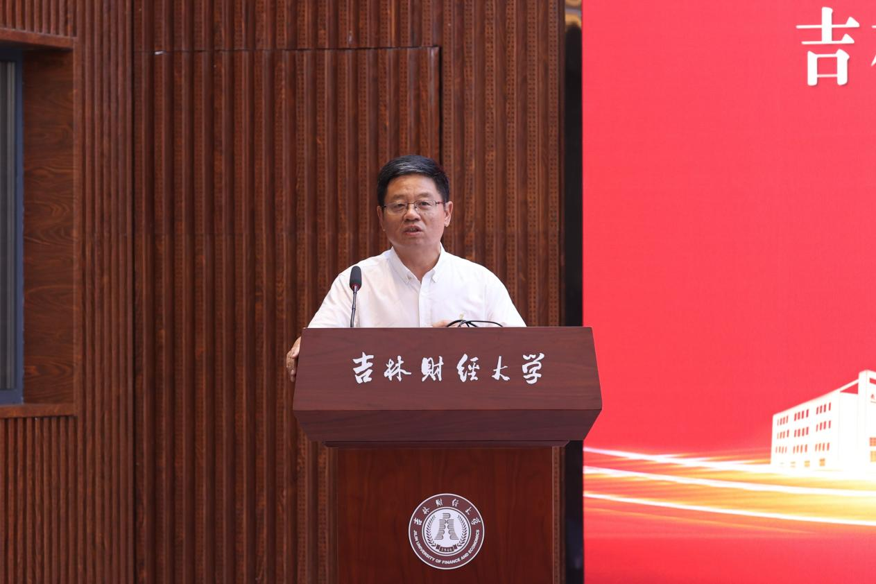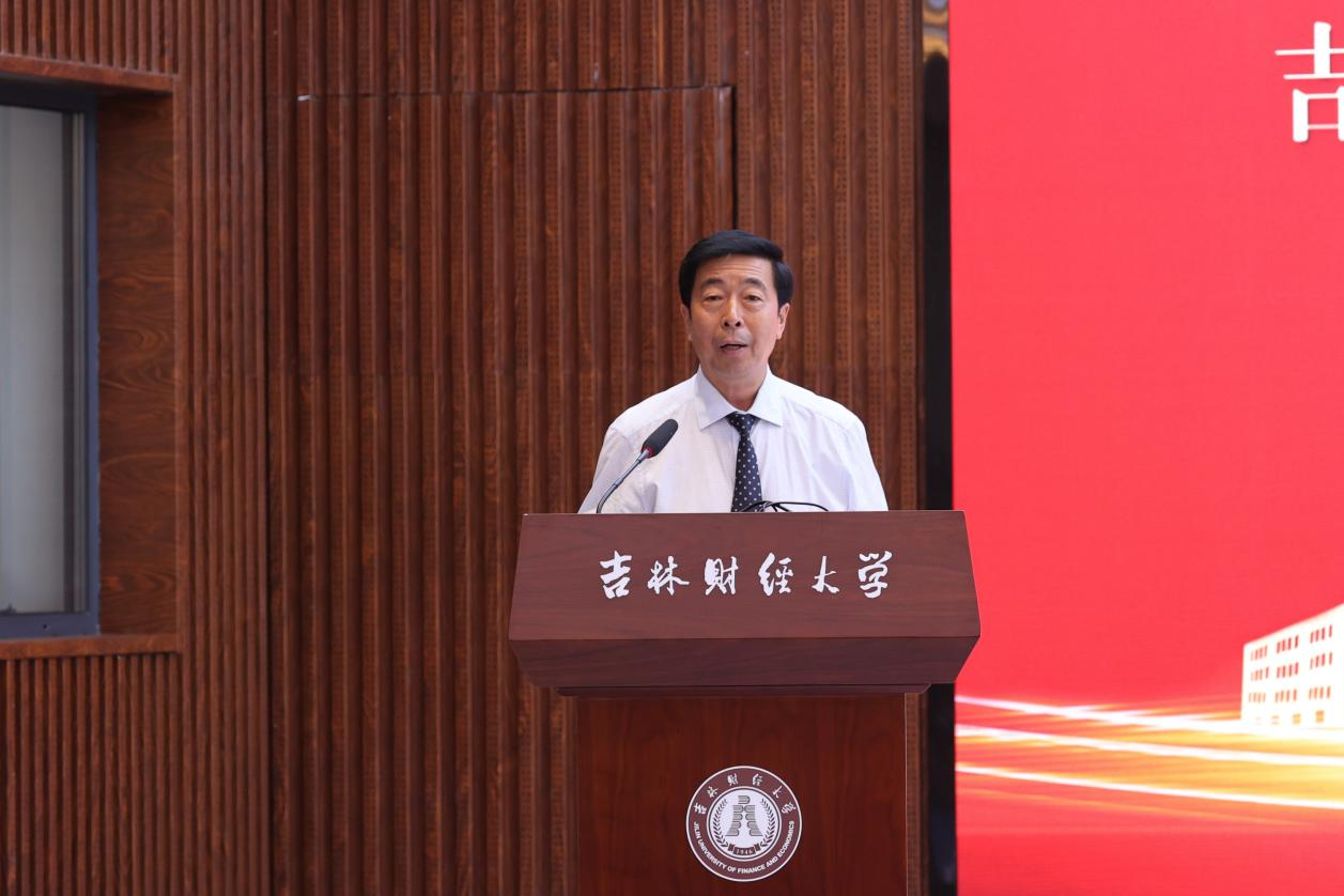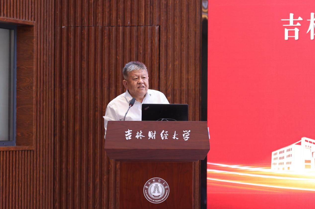 在主旨演讲环节,5位校友和学校科研处处长祝国平依次作主题报告。关浣非校友以《对金融赋能实体经济的一些看法》为题,通过详实的数据,深入分析了金融服务实体经济的政策导向和结构性不足,指出破解抑制经济增长的关键问题,为金融领域如何服务吉林振兴发展提供了思路和参考;于志良校友围绕《弘扬企业家精神,勇担繁荣商贸大任》,深入阐释了勇挑社会责任、甘于奉献担当的企业家精神的鲜明特征和精神内核,分享自身推动企业做大做强、助力高质量发展感悟体会,号召全体校友企业要保持正气充盈的新风采、昂扬向上的精气神,勇于担当时代责任,进一步弘扬企业家精神,积极构建新发展格局、建设现代化经济体系、充分发挥高质量发展生力军作用;李万甫校友围绕《一流财经大学建设问题》主题,针对学校加快建设服务国家战略、服务地方经济社会发展需求的高水平财经大学,聚焦思想政治工作、人才培养质量、学科专业建设、师资队伍建设、科研社会服务、国际交流合作、条件保障能力、内部治理水平等问题,综合分析了现状、问题与路径,为加快推动学校各项事业发展提供了重要的参考价值;孙亚清校友围绕《浅谈当下消费领域变化及零售市场对策》主题,针对当前我国居民的消费行为和金融行为新变化,着重阐明了消费对于经济增长的重要作用,深入分析了当下消费特征,并对中日消费阶段进行了详细对照,从而提出关于零售管理的思考,给予深入研究消费对经济增长的拉动深层次启发;孙九龙校友围绕《借力资本力量,构建产业生态,助力地方区域高质量发展》报告主题,深刻阐述了资本招商和基金招商对地区转型发展的重要作用,提出通过“专项基金+上市公司/龙头企业+产业集群”模式构建产业生态,服务区域发展;祝国平围绕《东北全面振兴新突破的思考》主题,结合在省发改委东北振兴综合处挂职锻炼感受,全面分析了东北振兴进程中面临着一些制约发展的深层次矛盾,深入总结了一些战略机遇,认真讲解了推动东北全面振兴的突破点、聚焦点、立足点,为高校、企业和社会的每个成员共同推动东北全面振兴打下了坚实的理论基础。