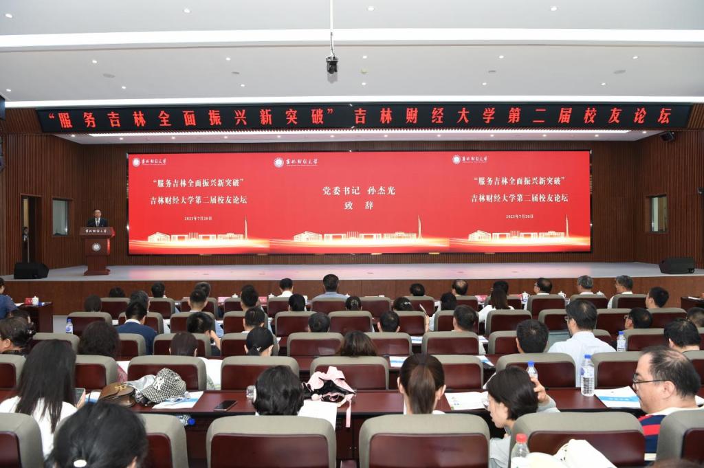 论坛活动上,校党委书记孙杰光致欢迎辞。孙杰光首先代表学校和全体师生对回到母校的校友们表示最热烈的欢迎与最衷心的感谢。孙杰光强调,校友是学校生态群落的重要组成部分,是学校流动的历史记忆,是学校精神传承的火种,是学校文化传播的载体;广大校友在各自领域辛勤耕耘、施展才华、创造业绩,在支持母校发展建设、参与教学科研、共建合作平台等方面的作用日益显现,更体现了校友们情牵母校的赤子情深。此次论坛既是学校深入贯彻落实党的二十大精神和省委第十二次党代会精神的重要举措,也是在吉林全面振兴的关键节点,为全面建设社会主义现代化新吉林注入强大动能、提供坚强支撑的战略之举。孙杰光号召全体校友紧紧抓住大有可为的历史机遇,全面贯彻落实校友人才促进吉林振兴发展的战略谋划,聚合优势资源,强化协同联动,为吉林全面振兴新突破贡献吉财智慧和吉财力量!