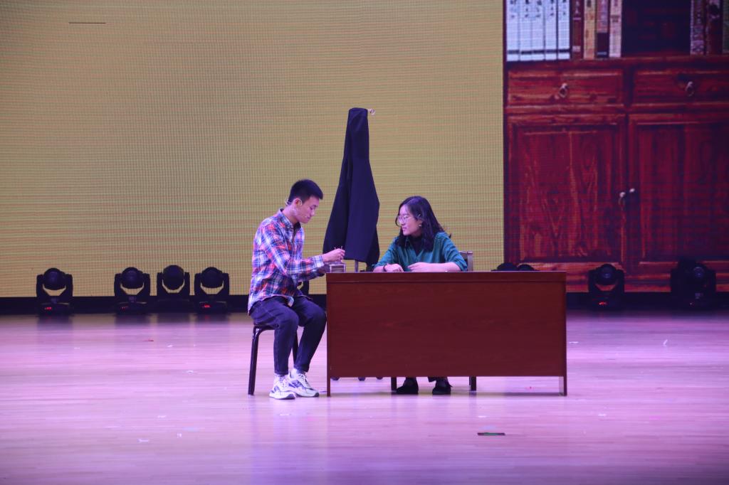 紧接着税务学院荆风话剧社为观众们带来话剧《妈妈老师》,将吕金华老师的感人事迹再现,歌颂了教师“春蚕到死丝方尽,蜡炬成灰泪始干”的可贵品质。