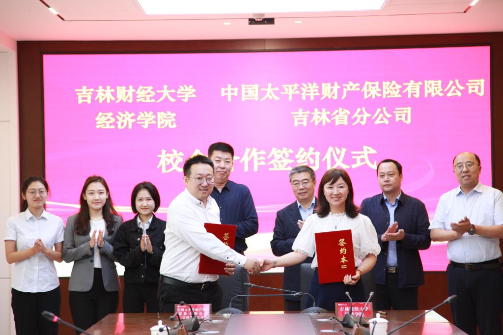 最后,中国太平洋财产保险股份有限公司吉林省分公司人力资源部部长乔建峰与经济学院院长张洪梅代表双方共同签订了校企合作协议书。