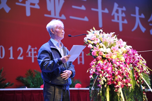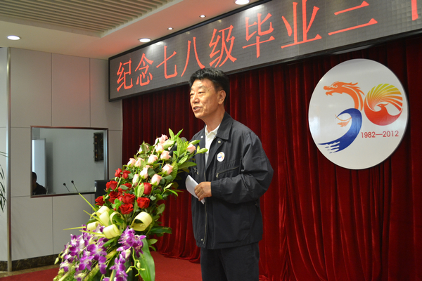 校友代表刘长生作了讲话。他深情回忆了当年在学校的学习生活,并代表七八级校友感谢母校的培养和关心。