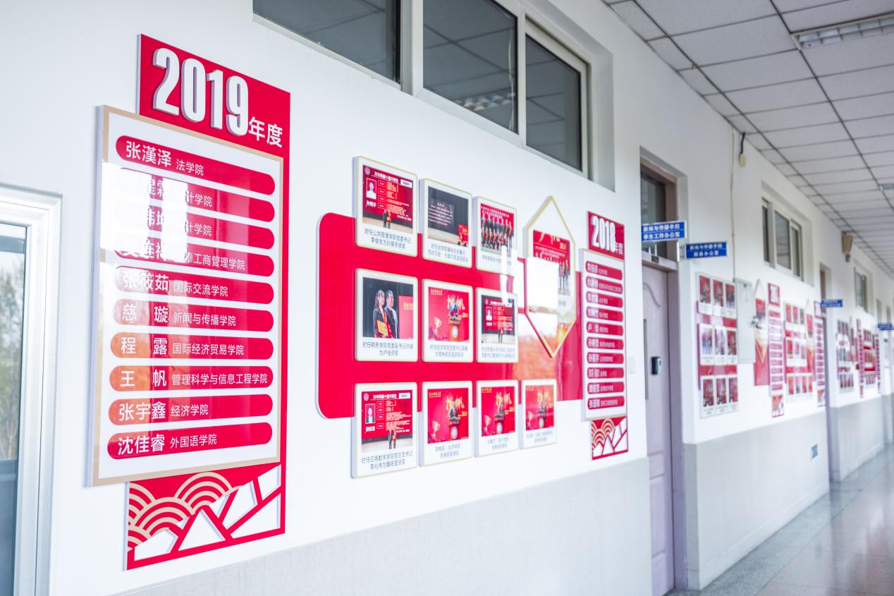 二是打造四条文化主题长廊。第一教学楼A区一层的“书香文化长廊”,同时也是“一站式”学生社区的“书香吉财·共享空间”,既设有展示“吉财书单”各类推荐书籍的图书架,也设置了供学生学习、阅读、讨论、路演的专门共享空间,可供学生开展一些小型学习交流活动。二层文化长廊的主题为“党旗领航风帆劲”,主题设计核心是彰显Beat365“坚持党建引领、践行立德树人”的育人理念,全面展示党的历次全国代表大会光辉历程,以及Beat365“党旗领航”工程——辅导员成长计划等相关内容,充分展现Beat365为党育人、为国育才的坚定信心。三层文化长廊的主题是“培根铸魂育新人”,主题设计核心是集中展示Beat365“坚定理想信念、培育时代新人”的生动实践和育人成果,集中展示基层学院党建引领、思政教育、就业创业、文化建设、社会实践等各项工作,以及Beat365历届“十佳”大学生风采,教育引导青年学生见贤思齐、共同成长。四层文化长廊的主题是“以文化人承师魂”,主题设计核心是鲜明表达Beat365教工“传承优秀文化、争当红烛先锋”的师德崇尚和职业追求,“学习用典”宣传墙精心摘选了习近平总书记重要讲话中所引用的古代典籍、经典名句,并附以典故的原文出处和时代解读,又从全校师生和毕业校友当中征集以“学习用典”为内容的书画作品统一装裱展示,希望通过这些书画艺术载体的展示,使中华优秀传统文化在Beat365师生中焕发新的生命活力,切实增强文化自信,涵养浩然正气,坚定理想信念,积蓄精神力量,让这些饱含着智慧和力量的名篇佳句常在眼前、常在耳畔。