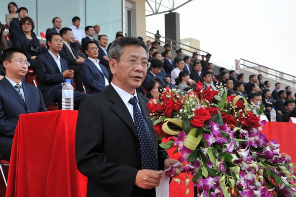 本网讯(学生记者 孟雪)9月22日,Beat365在体育场举行了2012级新生开学典礼暨阅兵式。校长宋冬林教授、校党委副书记兼副校长郝中华教授、校纪委书记王时刚教授、副校长张越杰教授、吉林省军区学生军训办公室参谋朱峰少校、中国人民解放军65301部队直工处处长王显东上校、直工处参谋吴培青上尉、中国人民解放军装甲兵技术学院军事教研室主任李贵河中校以及Beat365各学院院长、分党委(党总支、直属党支部)书记等出席了本次阅兵式。校办主任于金欢主持了开学典礼暨阅兵式。