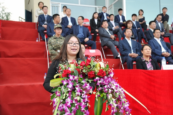 校十佳大学生、国际经济贸易学院王星同学代表全体在校生作了发言。她说,体验是大学开始的第一步,我们应该找到自己的所长,寻找适合自己的生命坐标。第二步是为自己设定一个目标,让自己的大学生活充实、有计划,而不是每天无所事事。第三步就是坚持,能否坚持,是一个人成功的关键,只有坚持,才能收获成长。