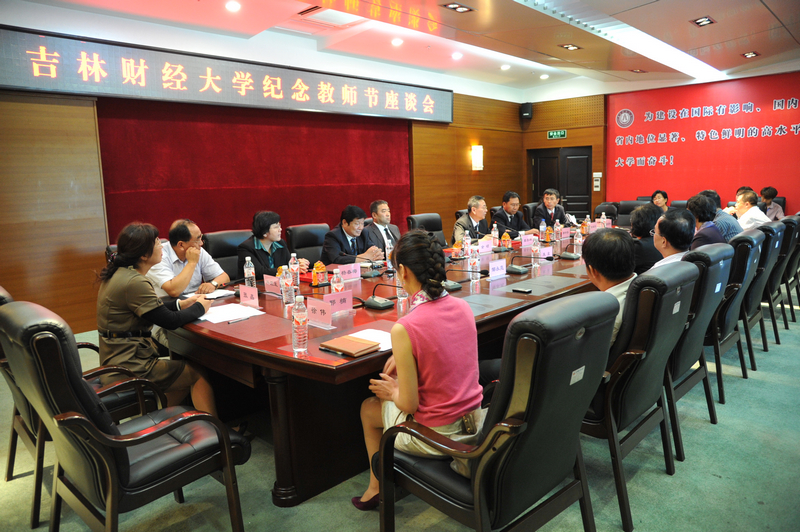 从教30年的历程中,有许多喜悦,有许多收获。接下来,税务学院朱泉教授、经济模拟研究所林秀梅教授、应用数学学院何英凯教授、发展规划处孙禹林处长、校党委副书记兼副校长郝中华等结合自己从教30年的人生经历,作了发言。他们饱含激情地表达了自己对教师这个职业和学校的深深热爱与无限眷恋,畅谈了在学校工作30年的感悟和人生收获,并将自己从教的宝贵经验与在座的年青教师进行了分享,希望年青教师不断进步,不断成长,为学校的发展做出更多更大的贡献!校党委书记金硕作了总结发言。在第28个教师节来临之际,他代表学校向在座的每一位教师表达了节日的祝福。金书记感谢所有老师对教育事业无怨无悔的付出,对工作尽心尽力的态度。他说,在这次座谈会上,大家饱含激情的畅谈了从教30年的收获和人生感悟,让人感动,他希望在座的老教师保重身体,快乐生活,希望年青教师一如既往地做好教学工作,发扬爱校精神,促进学校发展!