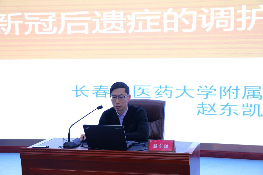 赵东凯通过图片展示、案例分享,从新冠后遗症、如何应对新冠后遗症和秋冬季节养生三个方面讲解了疾病预防、饮食健康、生活保健等健康知识,并提醒教职工们要从饮食、起居、劳作等方面掌握正确的养生方法,做到防治并举,辨证治疗。