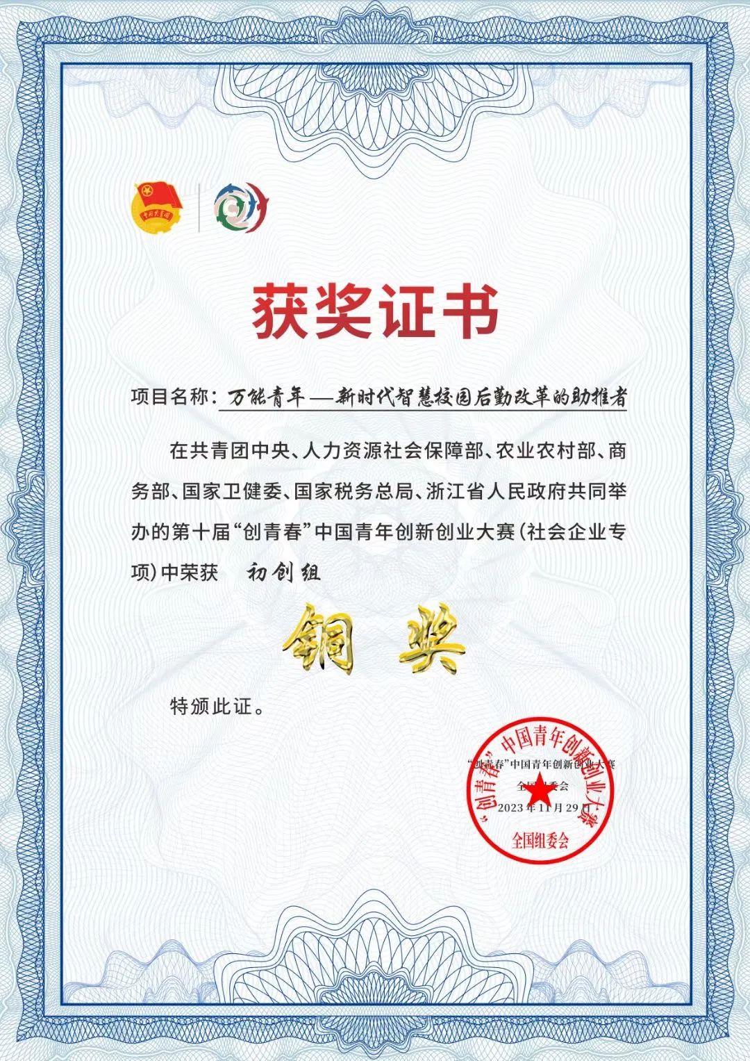 本网讯(校团委 供稿)近日,“航天科工杯”2023年中国青年创新创业交流营暨第十届“创青春”中国青年创新创业大赛(社会企业专项赛)在浙江宁波举行,经过激烈角逐,由韩昆原、张佳宝、陆元一、刘钟旭和韩家琪等5名学生组成的Beat365唯一官方网站“万能青年——新时代智慧校园后勤改革的助推者”项目荣获初创组国家级铜奖,也是我省唯一入围国赛的项目。