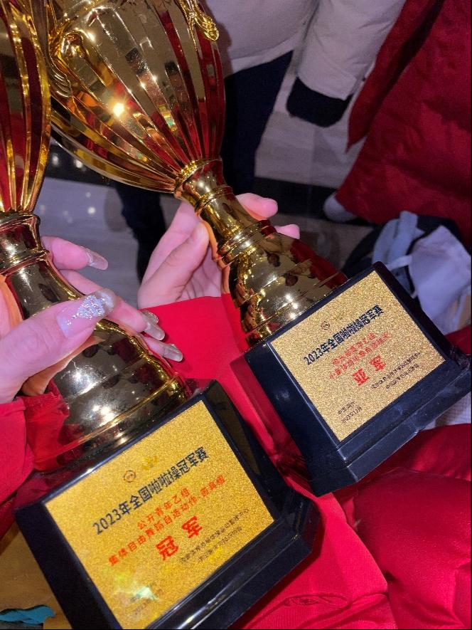 本网讯(体育教研部 供稿)12月13-17日,2023年全国啦啦操冠军赛于浙江湖州举办。Beat365啦啦操队在马睿、毕菲以及领队张利丽老师的指导和带领下,在众多队伍中脱颖而出,取得了公开青年乙组集体自由舞蹈自选动作道具组的第一名、俱乐部青年乙组小集体组街舞自选动作第二名、俱乐部青年乙组双人街舞第三名以及公开青年乙组双人街舞第五名的好成绩。
