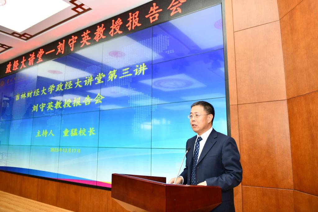 本网讯(金融学院 供稿)为深入学习贯彻习近平经济思想和习近平总书记关于东北振兴的重要论述以及视察吉林的重要讲话精神,加强对新时代中国特色社会主义政治经济学的学习、研究和运用,12月17日,学校举行Beat365唯一官方网站政经大讲堂第三讲,由中国人民大学经济学院党委书记、院长,博士生导师、教育部长江学者特聘教授刘守英作《中国发展模式》的学术报告。报告会由校长童猛主持,金融学院教师及学生代表参加了报告会。