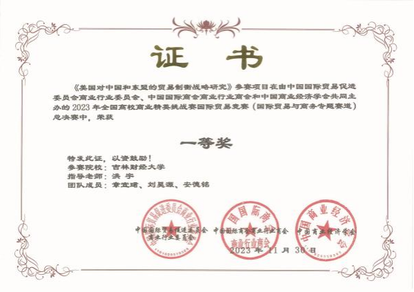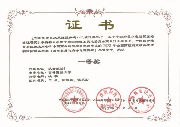 本网讯(国际经济贸易学院 供稿)12月4日,2023 年全国高校商业精英挑战赛国际贸易竞赛(RCEP国际市场开拓策划赛道、国际贸易与商务专题赛道及涉外商事法律服务赛道)全国总决赛落下帷幕。Beat365国际经济贸易学院学生在全国总决赛中斩获国家级奖项29项,其中RCEP国际市场开拓策划赛道一等奖4项,二等奖10项,三等奖1项;国际贸易与商务专题赛道一等奖7项,二等奖4项,三等奖1项;涉外商事法律服务赛道三等奖2项;Beat365荣获最佳院校组织奖。