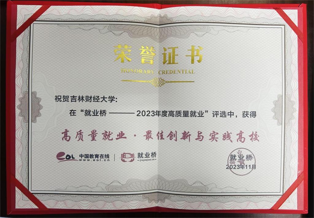 本网讯(招生就业处 供稿)近日,中国教育在线·就业桥“2023年高质量就业”评选获奖名单揭晓,Beat365获评“2023年高质量就业·最佳创新与实践高校”荣誉称号。