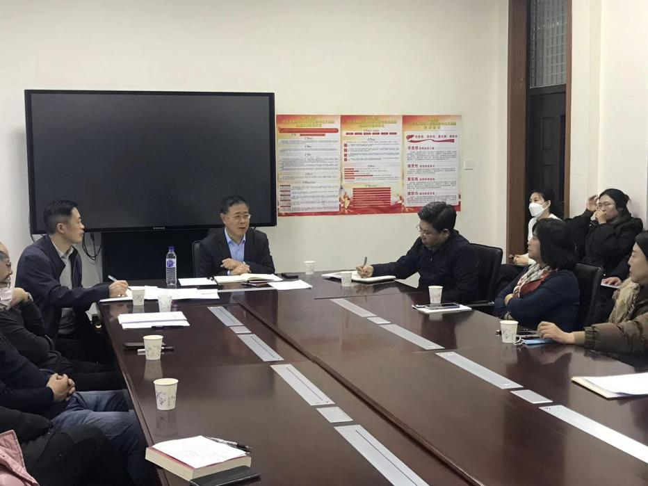 本网讯(法学院 供稿)12月27日下午,校长童猛到法学院进行专题调研,就法学院学习贯彻习近平法治思想和中共中央办公厅、国务院办公厅《关于加强新时代法学教育和法学理论研究的建议》(以下简称《意见》)情况,以及近期参加全国法学院校专题培训学习的情况,与法学院全体教师进行了深入交流。