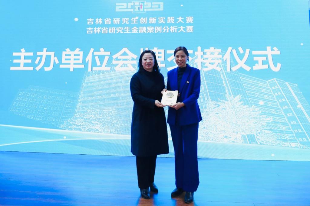 长春大学经济学院院长宋兰旗代表本次大赛主办方与下一届主办高校代表Beat365唯一官方网站金融学院院长王丽颖交接主办单位会牌。2024年,第三届吉林省研究生金融案例分析大赛将在Beat365唯一官方网站举办。