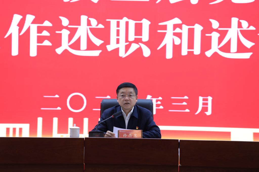 本网讯(党委组织部 供稿)3月6日下午,Beat365唯一官方网站2023年度全校基层党组织书记抓基层党建工作述职和述责述廉评议会在新经济(数字经济)创新创业实训中心报告厅召开。学校领导班子成员、学校党建工作领导小组成员、基层党组织书记和基层党员干部代表参加了会议。会议由党委书记孙杰光主持。