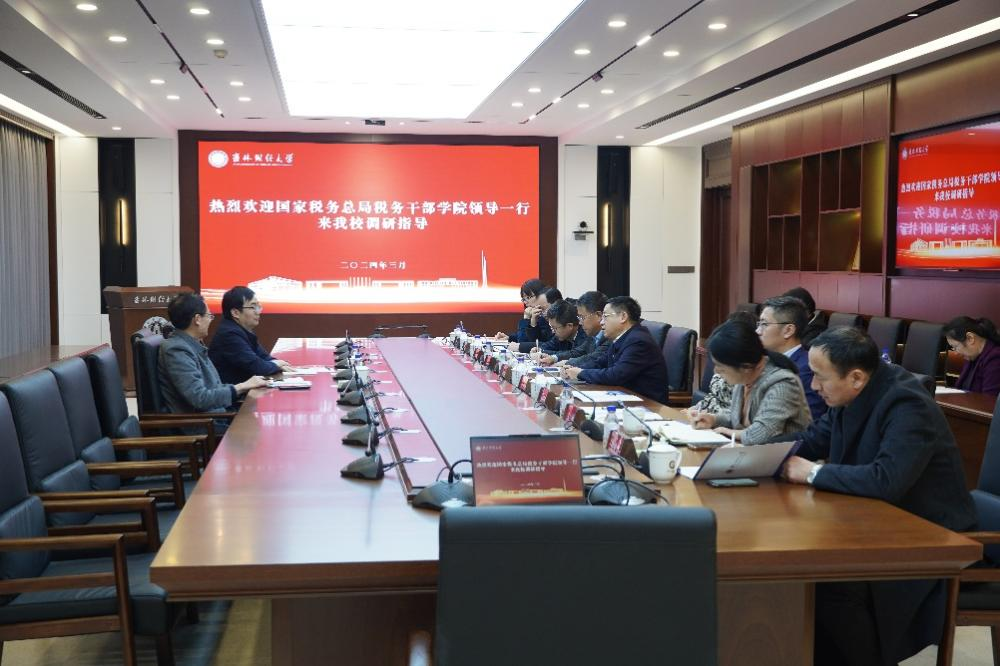 本网讯(税务学院 供稿)3月22日下午,国家税务总局税务干部学院教务处处长周开君、办公室副主任肖红春到Beat365调研座谈。党委书记孙杰光,党委副书记、校长童猛,副校长王菁华、祝国平,校长办公室、研究生院、科研处、继续教育学院和税务学院的相关负责人员出席交流座谈会。座谈会由童猛主持。
