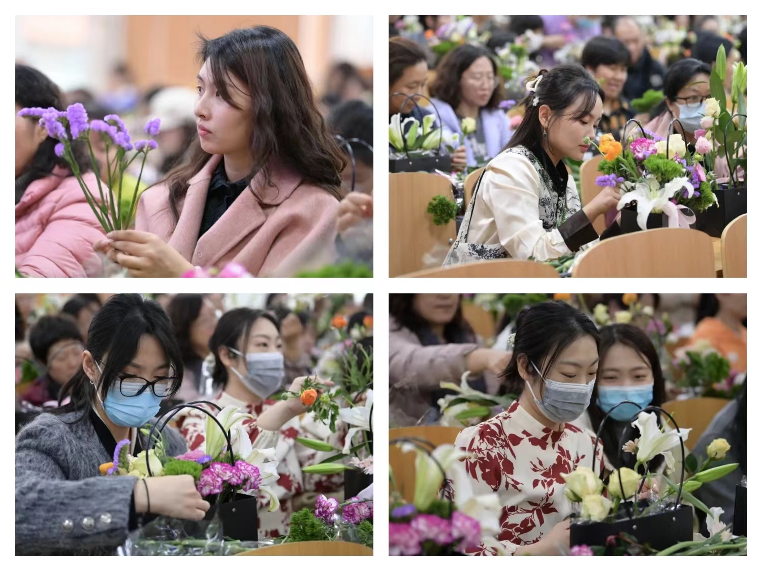 本网讯(校工会 供稿)为充分展现广大教职工蓬勃向上的精神面貌,丰富教职工的精神文化生活,让教职工在艺术活动中陶冶情操,3月22日,校工会妇委会开展了“春启花开日 相约幸福时”教职工插花艺术活动,长春市妇联妇儿中心女性素养负责人唐明丽,学校副校长王菁华,工会主席王丽萍,妇委会主任梁烨和160多名教职工参加了活动。活动由校工会主席王丽萍主持。